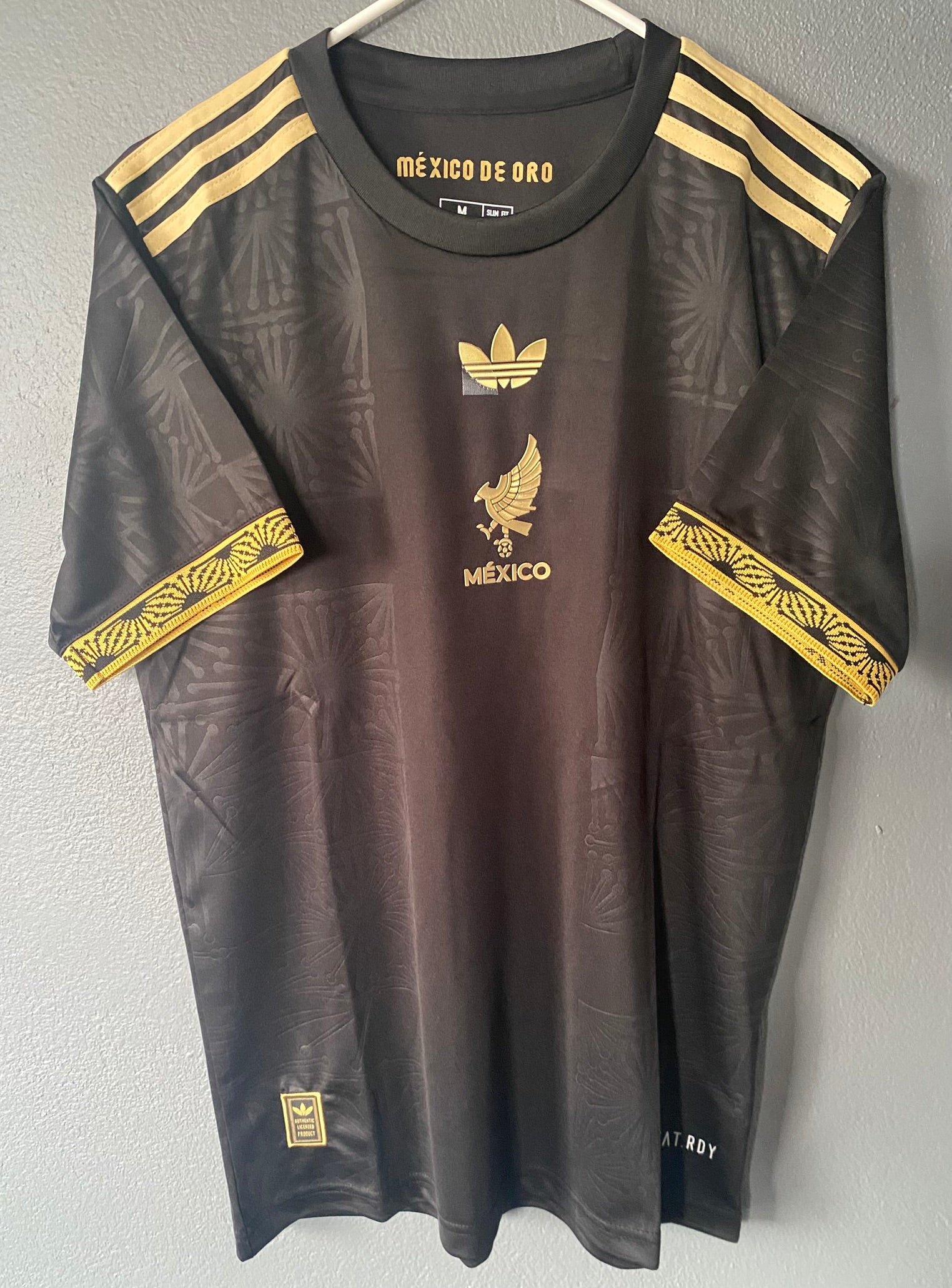 Destaca con la Jersey México Local 2025 en versión aficionado, una prenda que combina la tradición de la Selección con un diseño elegante en negro y dorado, perfecta para quienes quieren apoyar con estilo dentro y fuera de la cancha.